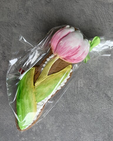 Имбирный пряник «ТЮЛЬПАН» — вкусный презент на самый весенний праздник. Ручная роспись, приятный аромат и нежная текстура. Отлично подходит как самостоятельный презент, так и дополнение к подарочным наборам.