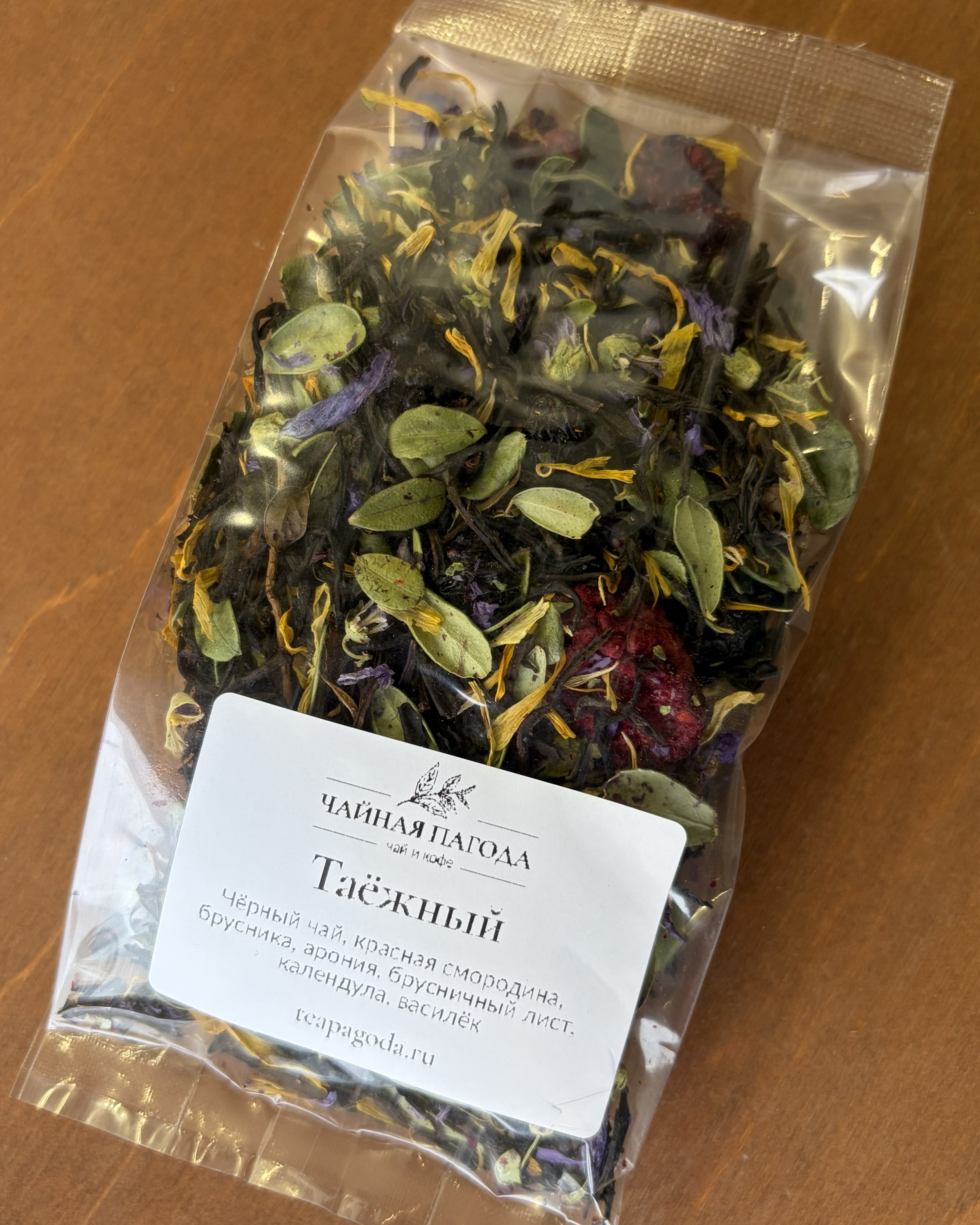 Черный чай, ягоды брусники, ежевики, можжевельника, аронии, брусничный лист, лепестки календулы и василька